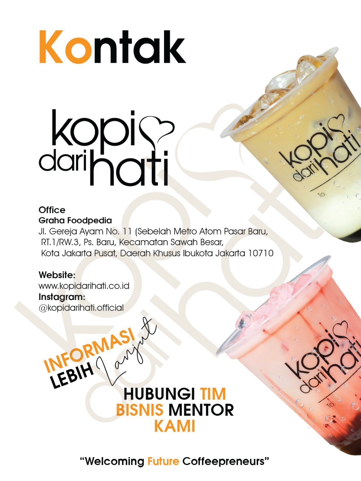 Kopi dari Hati mengadopsi konsep fresh to cup yang menyajikan pilihan kopi local terbaik di Indonesia. Penyajian produk kami yang kekinian dan menghadirkan produk produk kopi terbaik adalah komitmen Kopi Dari Hati.